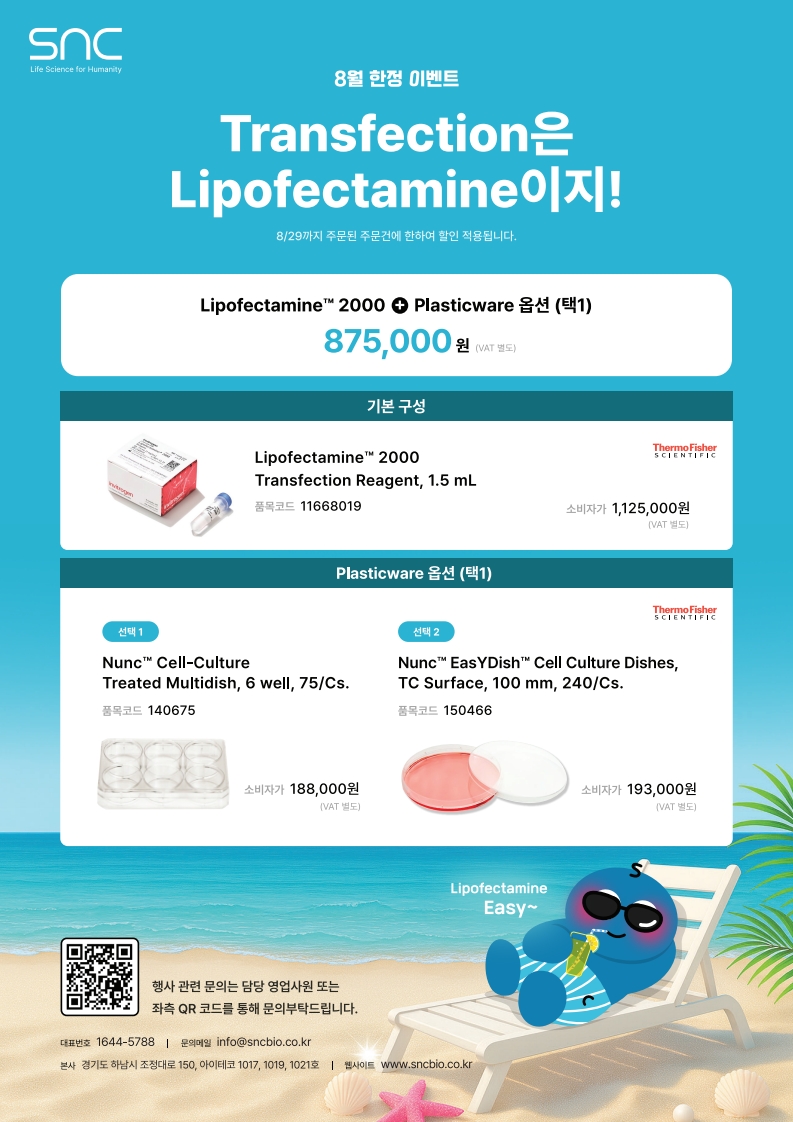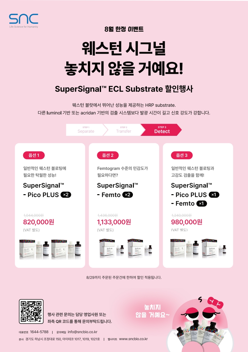 SNC에서 8월 한정 이벤트로 Transfection과 ECL Substrate 시약 할인을 진행합니다!